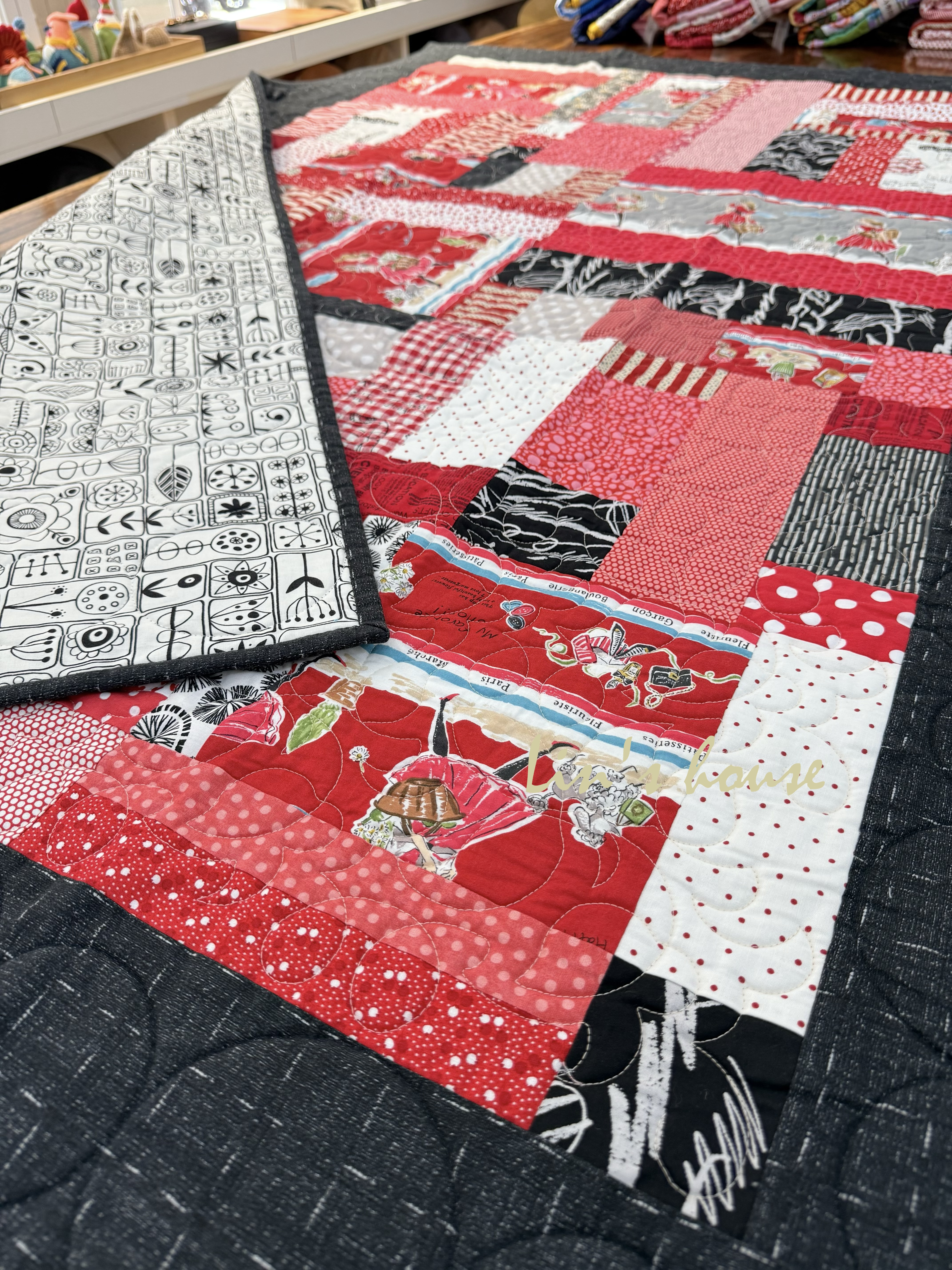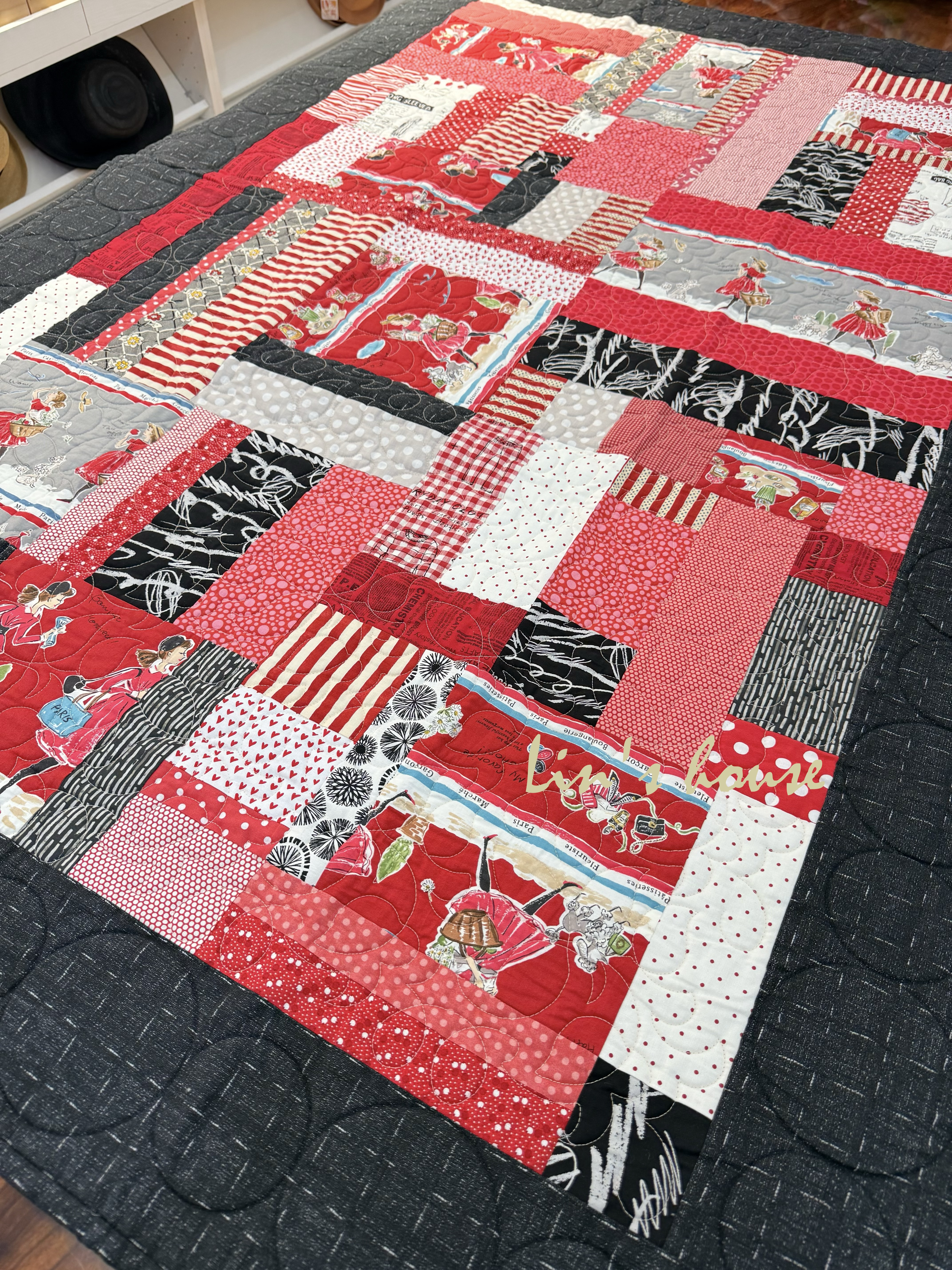 主體採用 自由拼接(Improvisational Piecing) 技法,