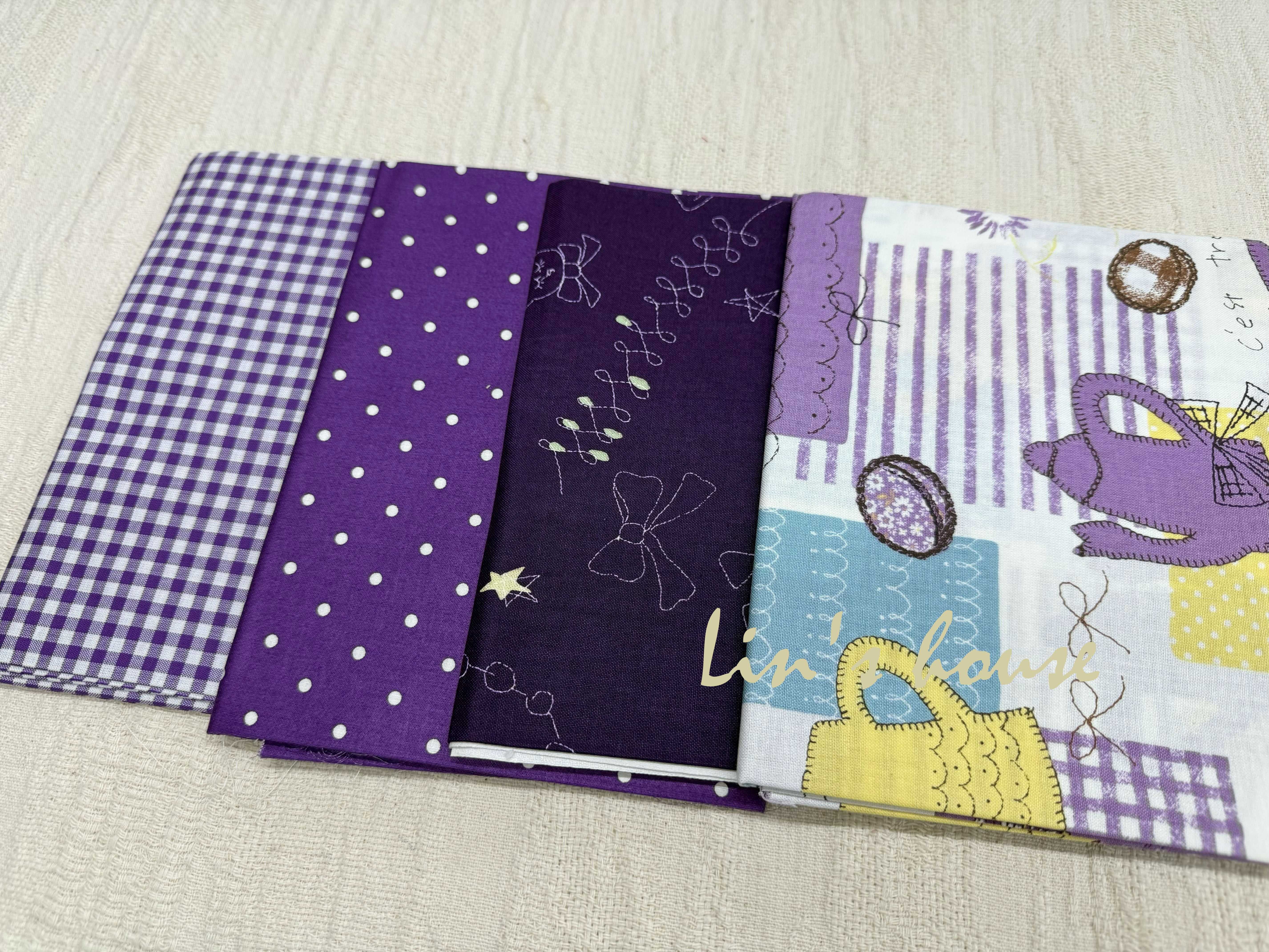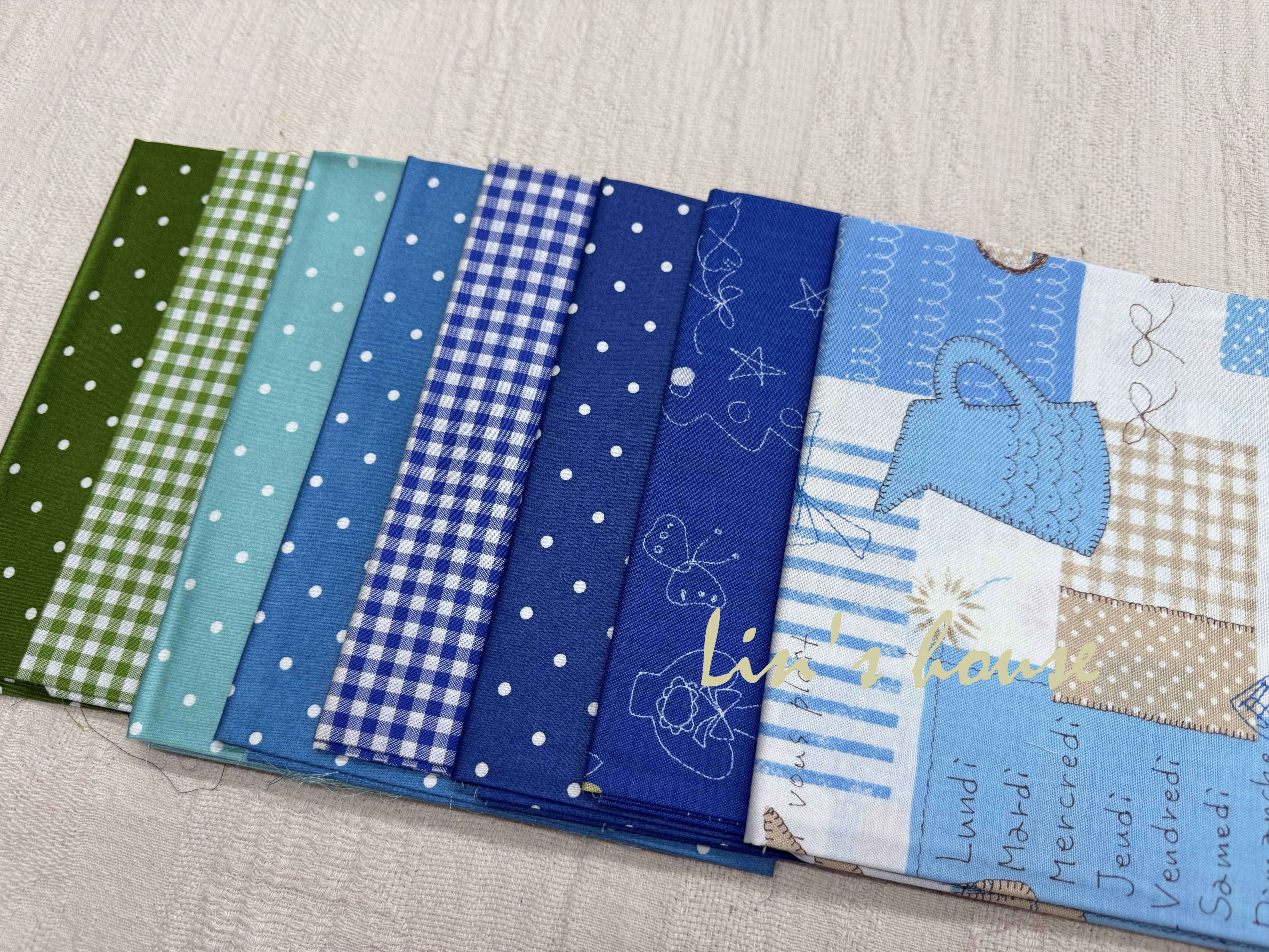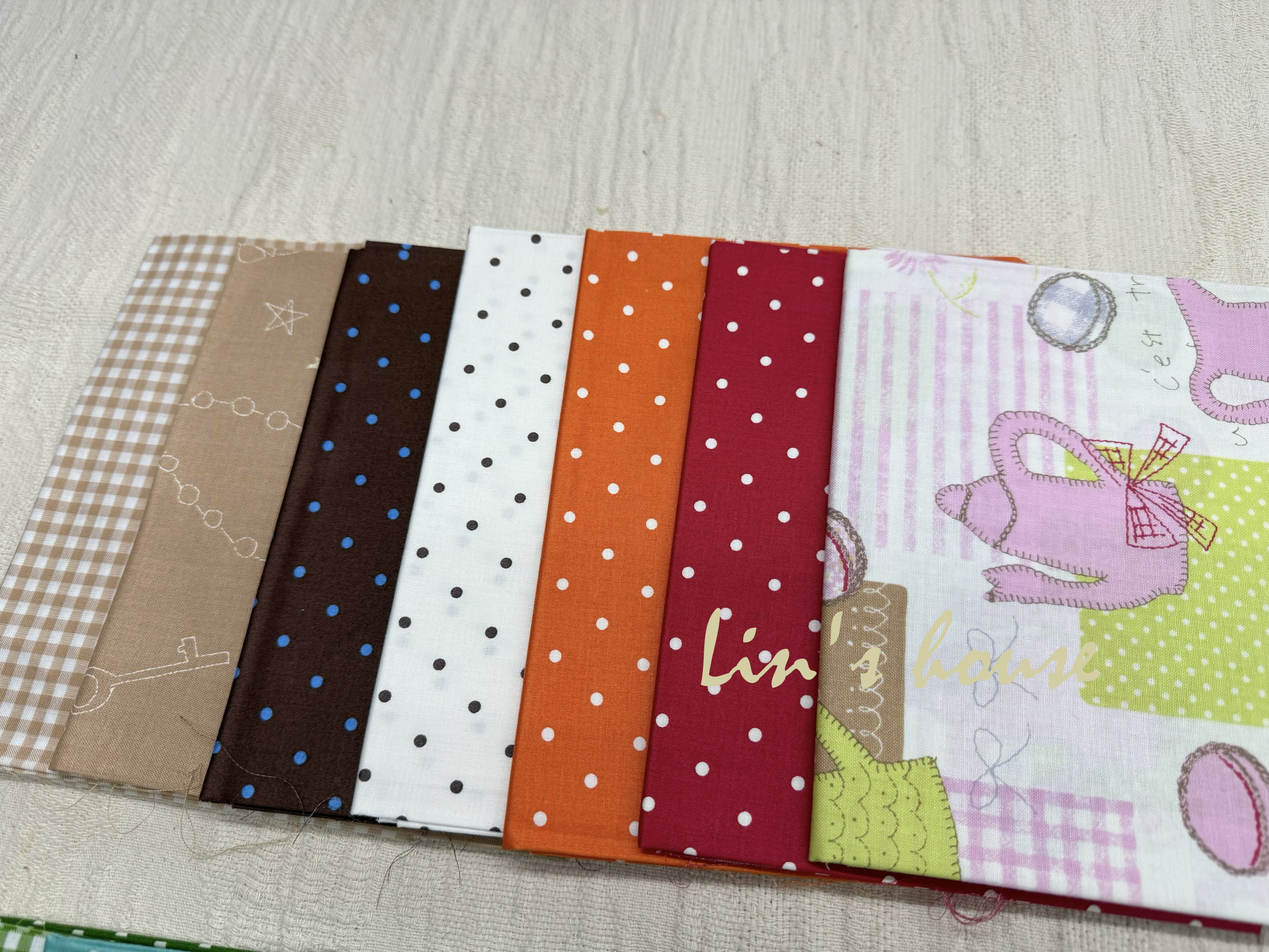 三款主題布、點點、格紋、插畫通通有,其中 點點布還帶有光澤感,做出來的拼布作品會更有質感